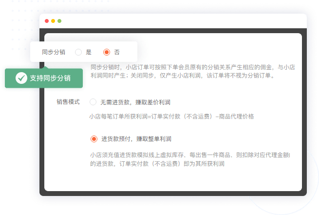 可在代理小店体系下配置各商品的代理状态和代理价格,店长从主商城中获取可代理的商品。