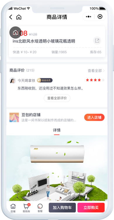 独立的商品、订单管理系统、独立的店铺装修功能