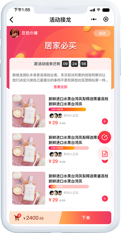 有效营造群内抢购氛围,加快用户购买决策、带动转化,提升店铺订单量。